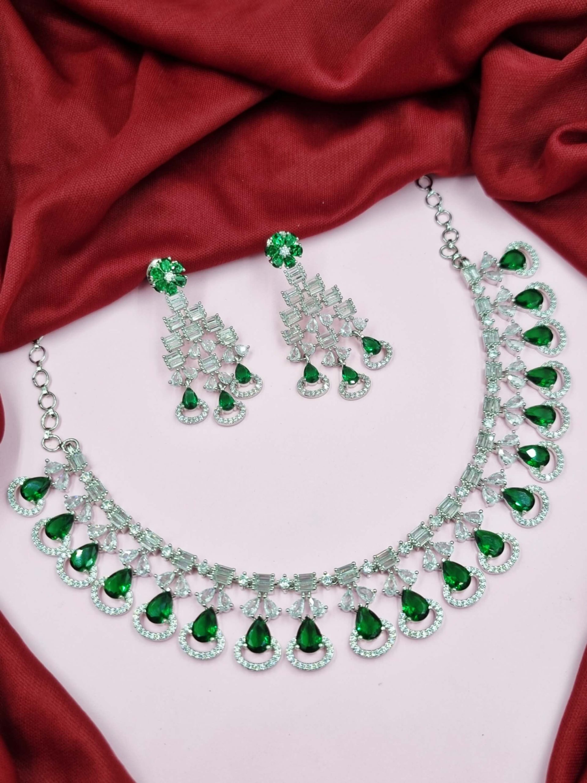 Glamorous White Rodium Polish Necklace Set Dazzling CZ Stones Jewellery