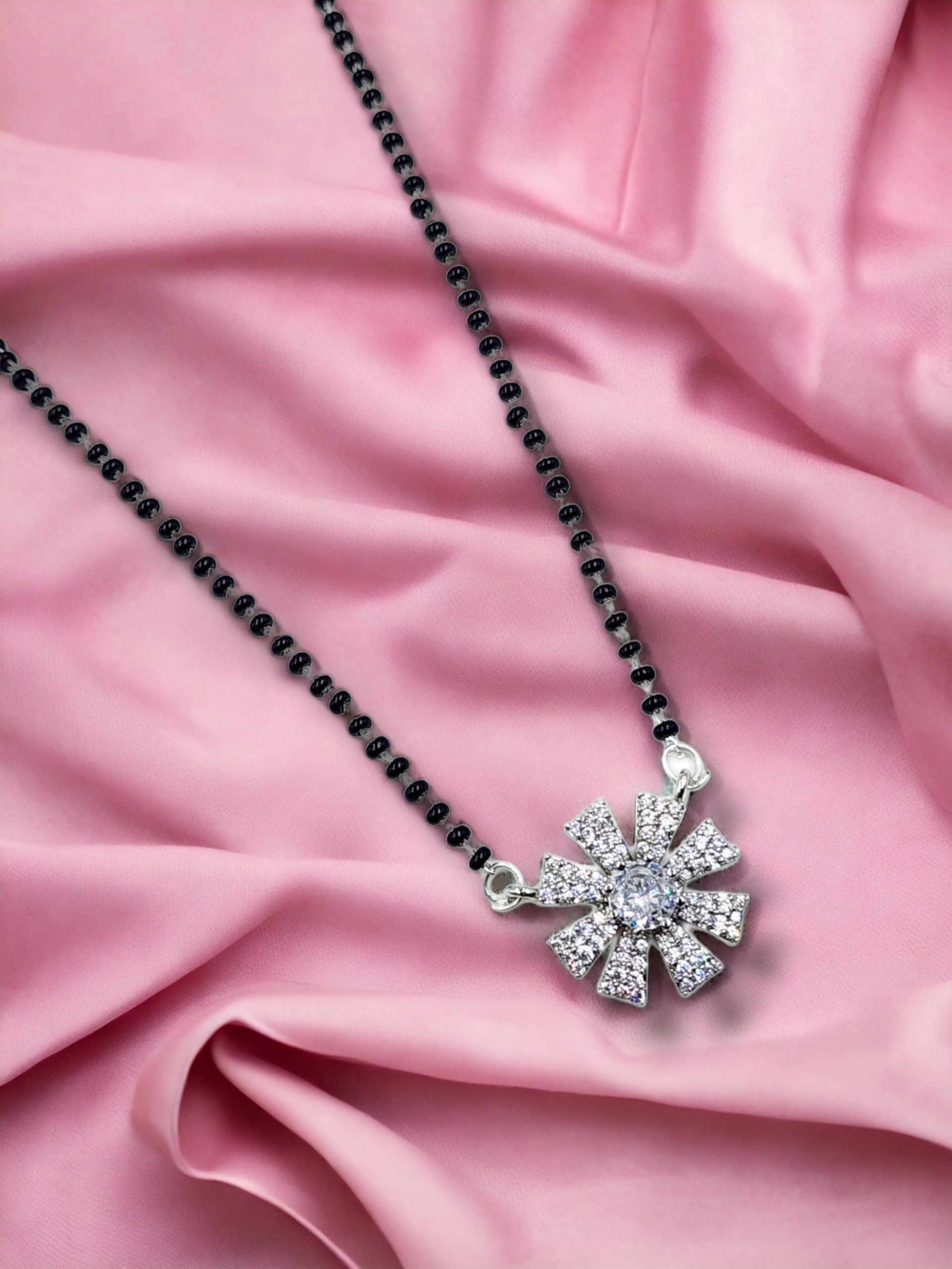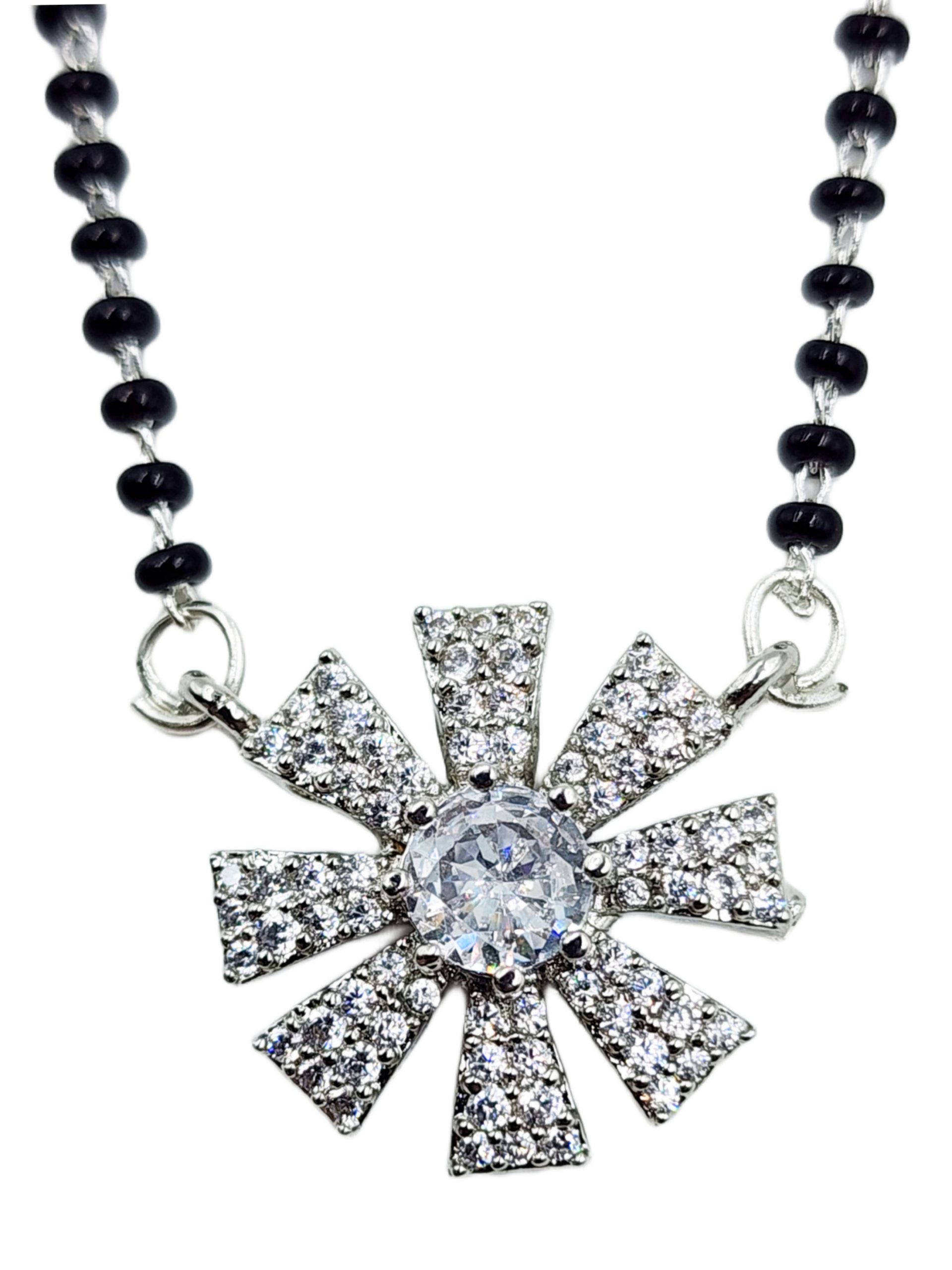 La Trendz American Diamond Silver Rhodium Plated Mangalsutra Pendant with Chain