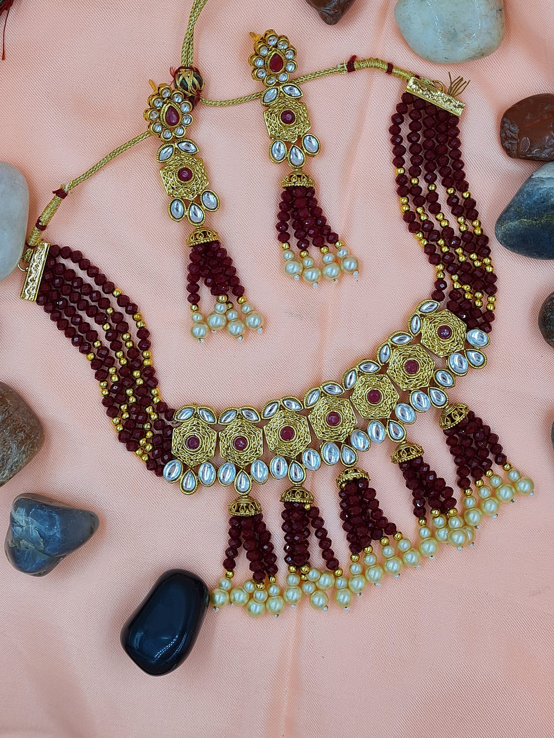 La Trendz Beautiful Party Crystal Choker Necklace Set For Women