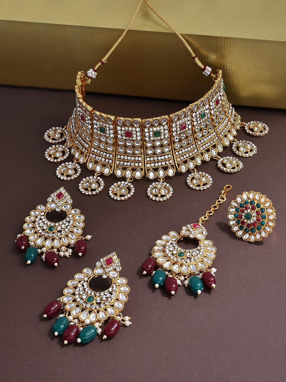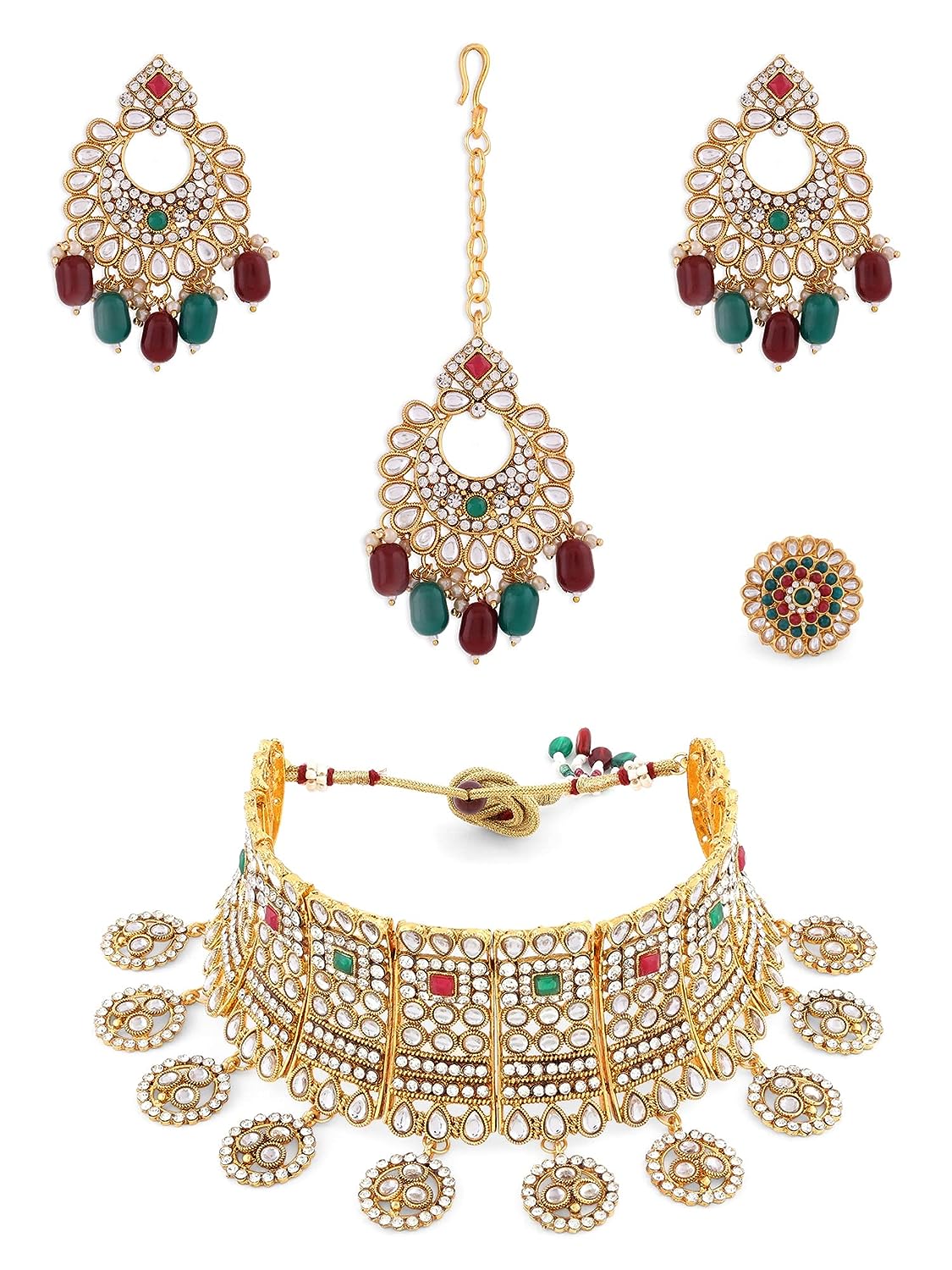 La Trendz Ethnic Kundan Choker Necklace Set With Maang Tikka For Women
