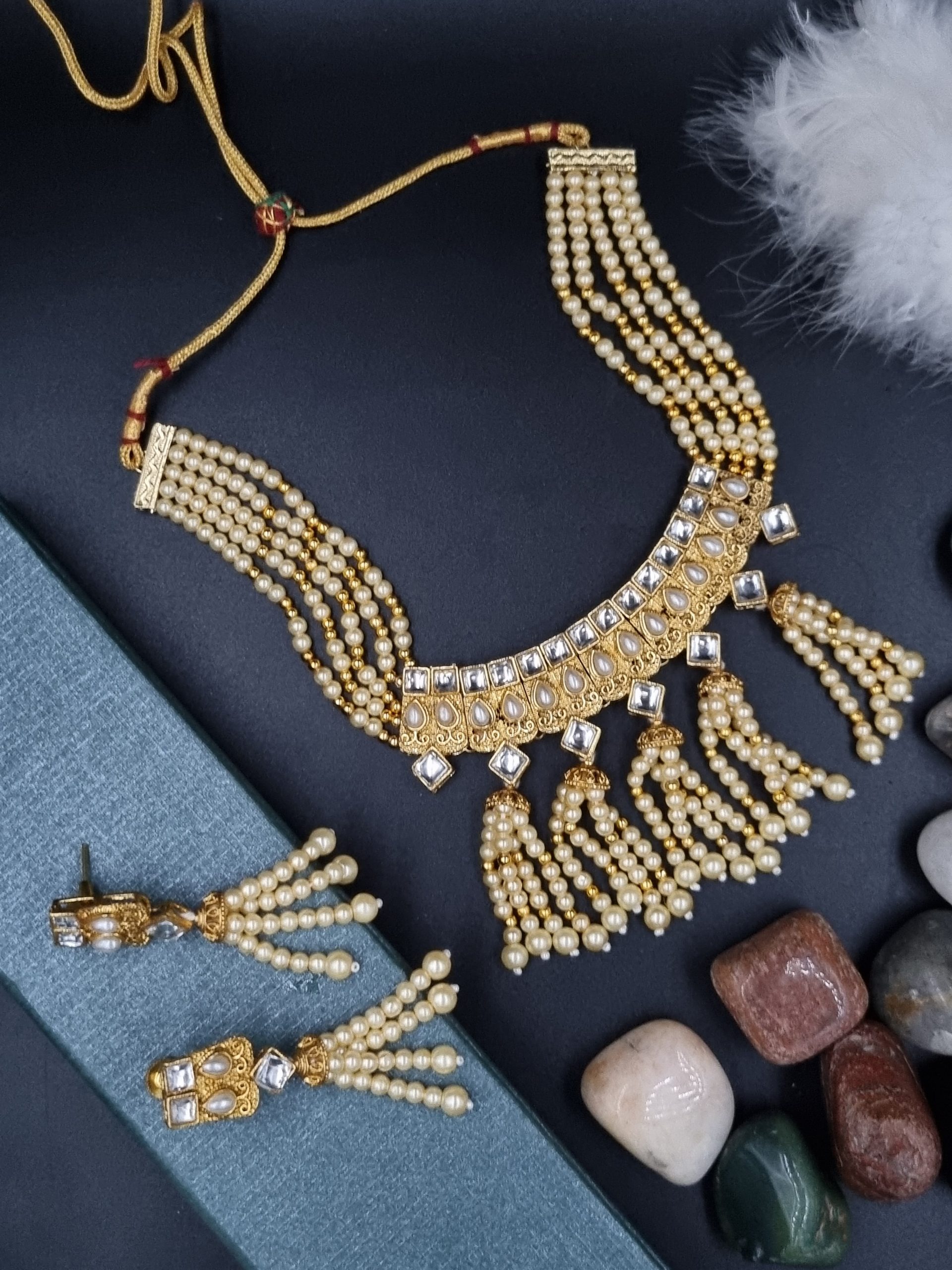 La Trendz Traditional Kundan Long Party Wear Necklace Set For Women