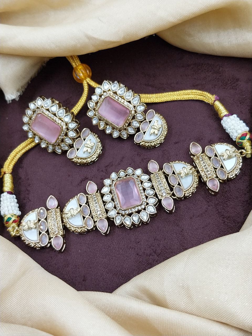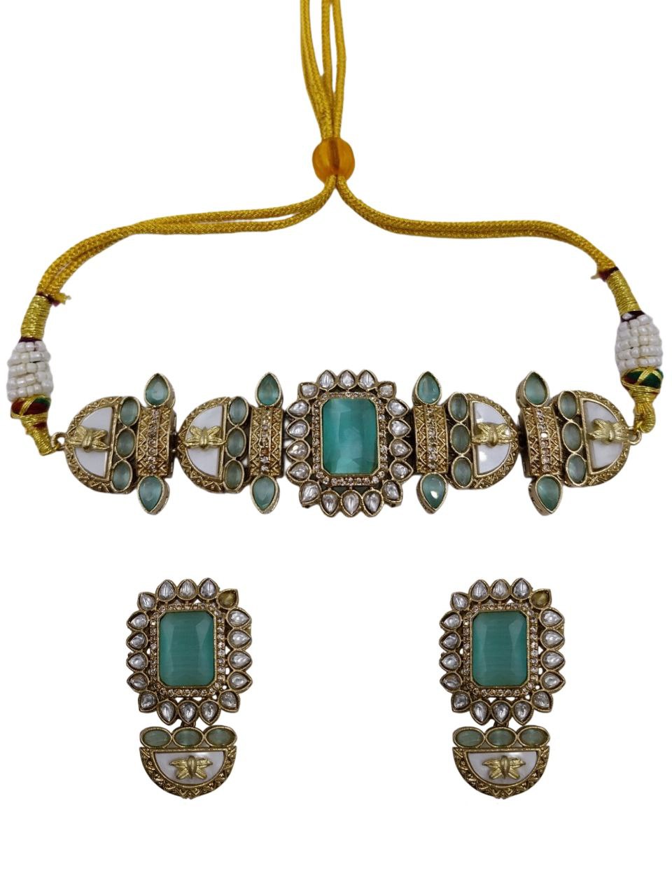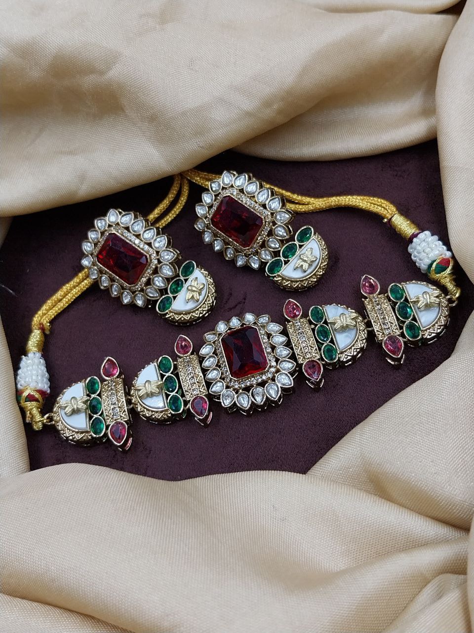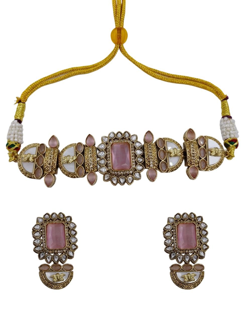 La Trendz Kundan Stone Bridal Choker Necklace Set with Earrings | Traditional Indian Wedding Jewelry for Women