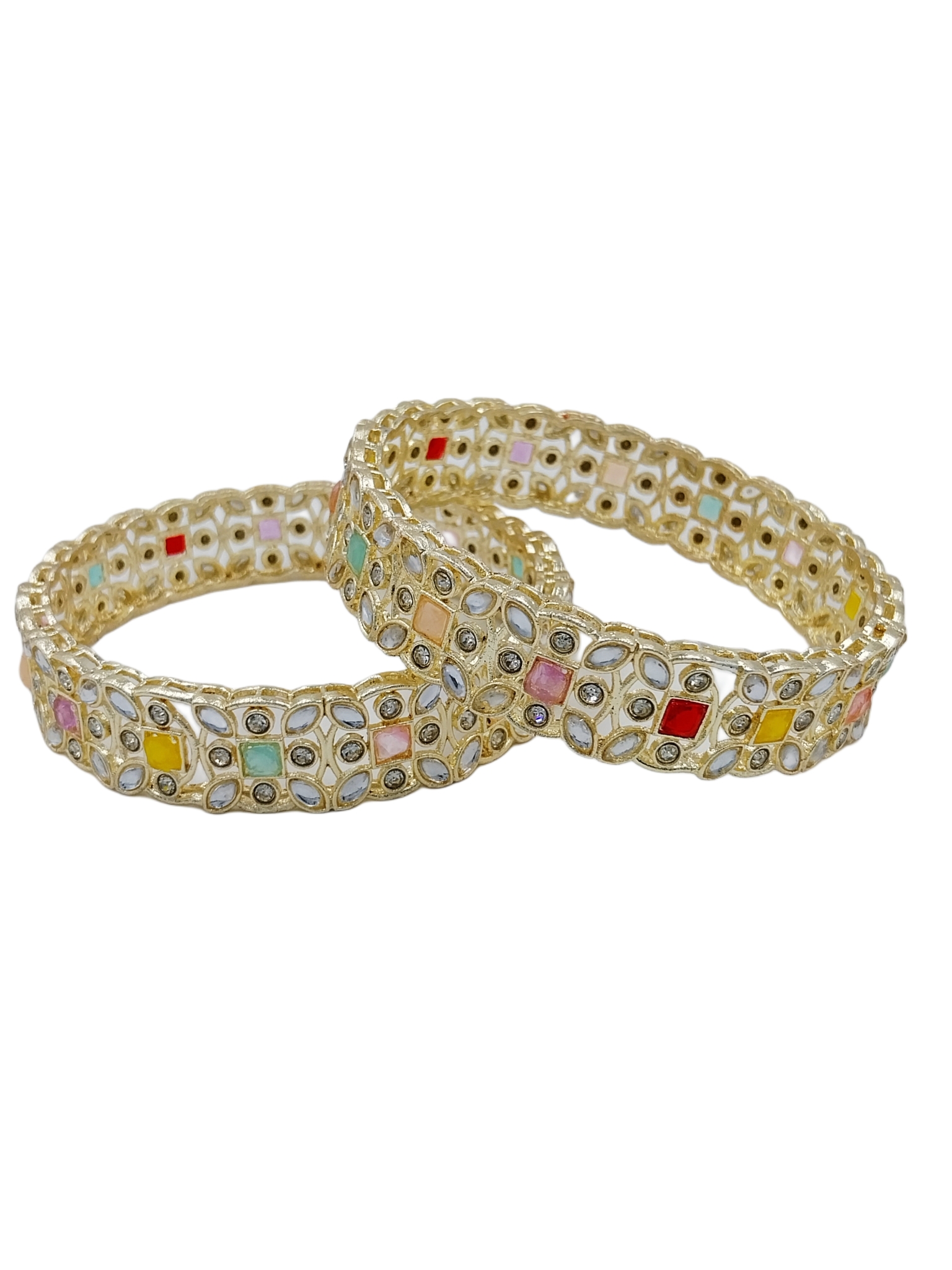 La Trendz Light Gold Polish Multicolor Fancy Style Bangles 2 Set