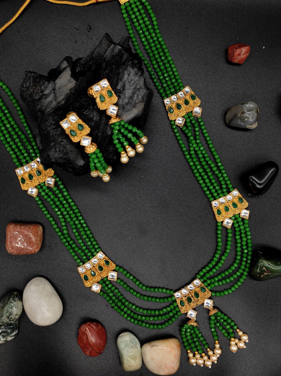 La Trendz Multistrand Beaded Bridal Necklace Earring Set For Women