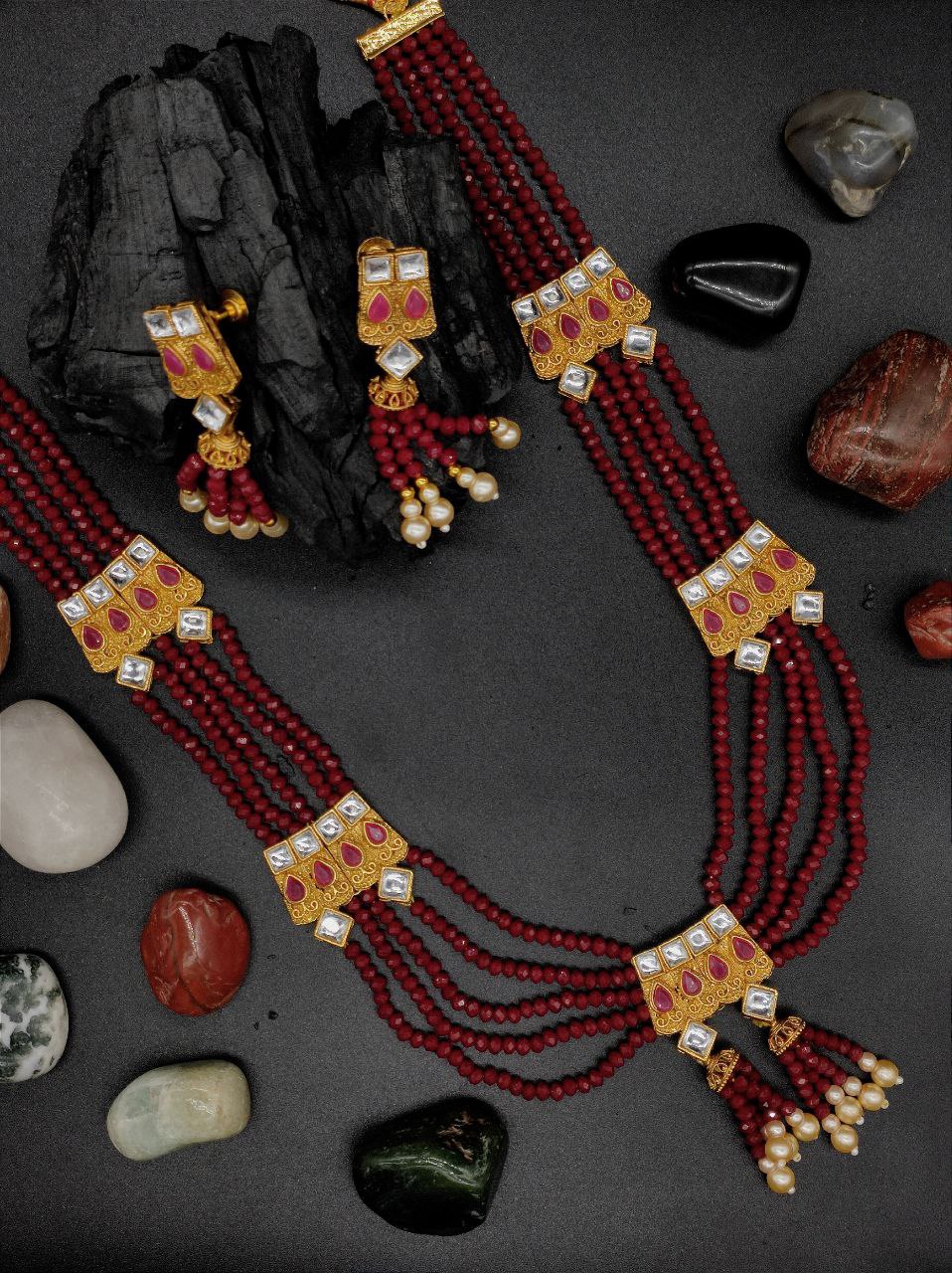 Beads / Stones : Stones / beads if used in the jewellery are either fibre based or glass based. These are all artificial stones, they are not precious or semi precious.