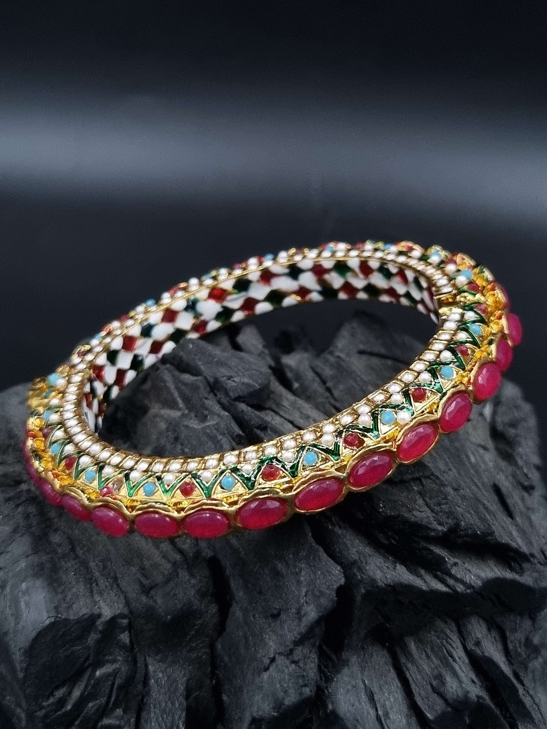 La Trendz Oval Polki Shape Openable Elegant Multi Color Kada Bangles For Women