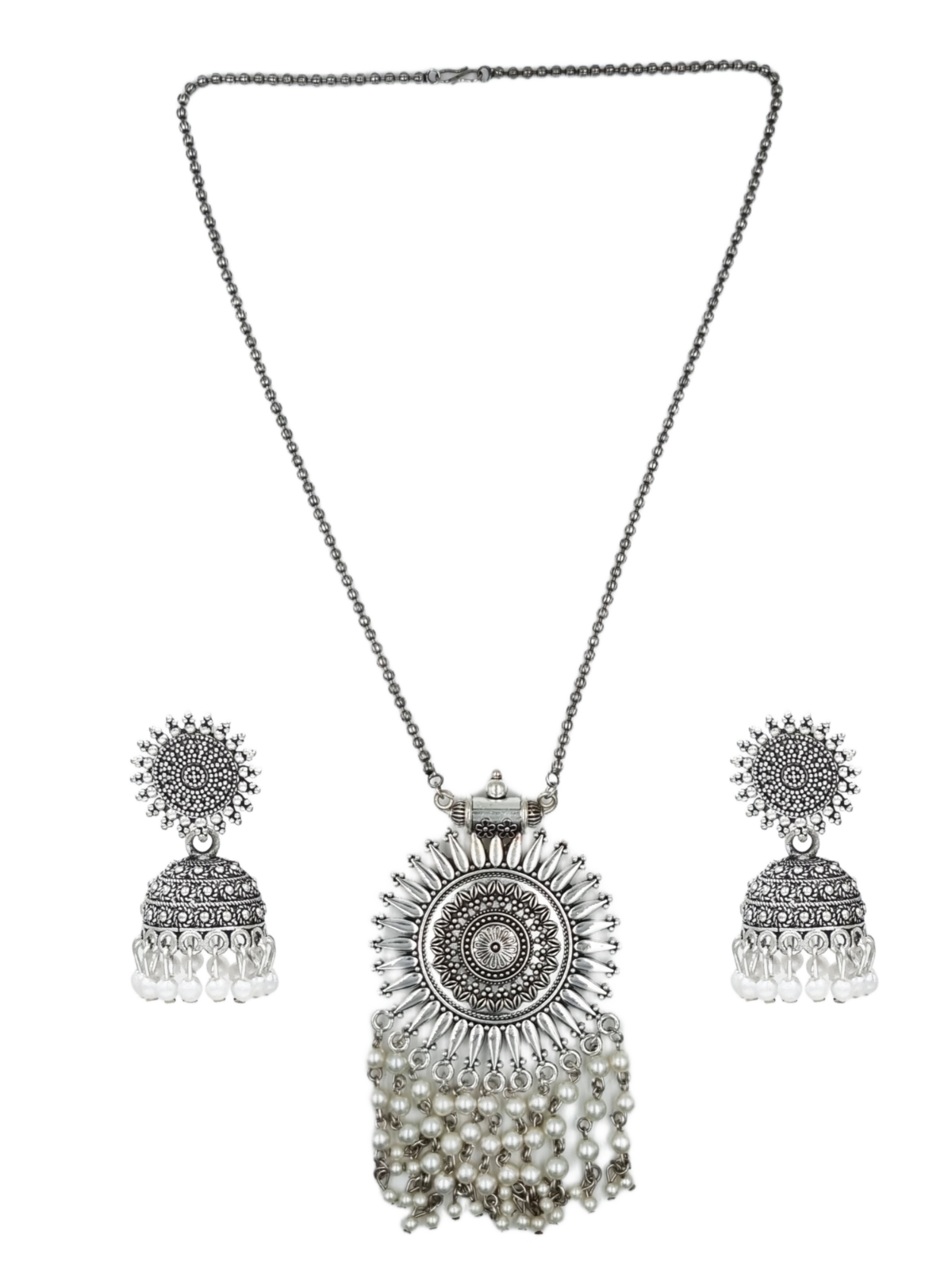 La Trendz Oxidised Silver Plated Pearl Necklace Set Earring