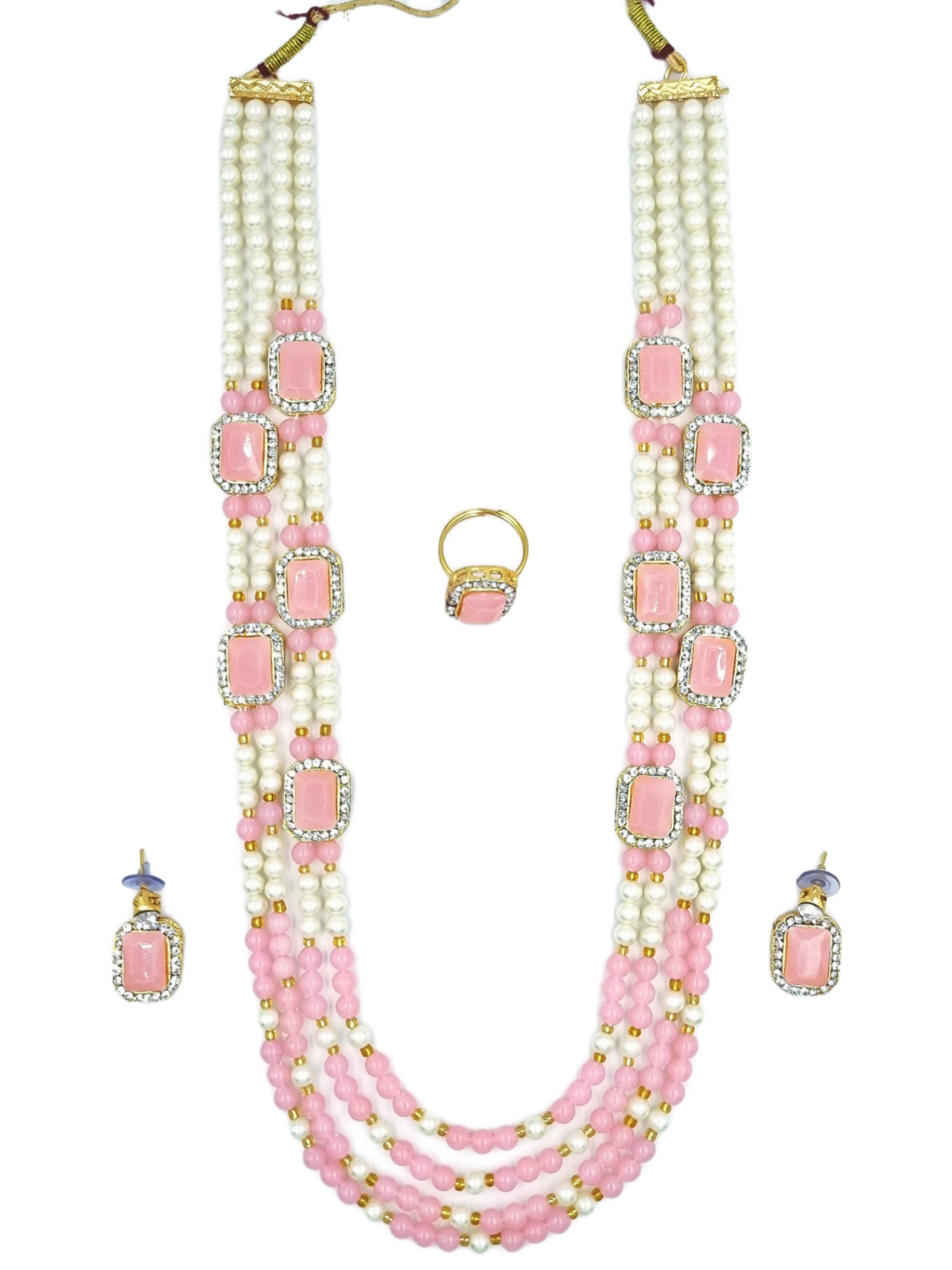 La Trendz Pink Beaded Long Ethnic Necklace Set For Women