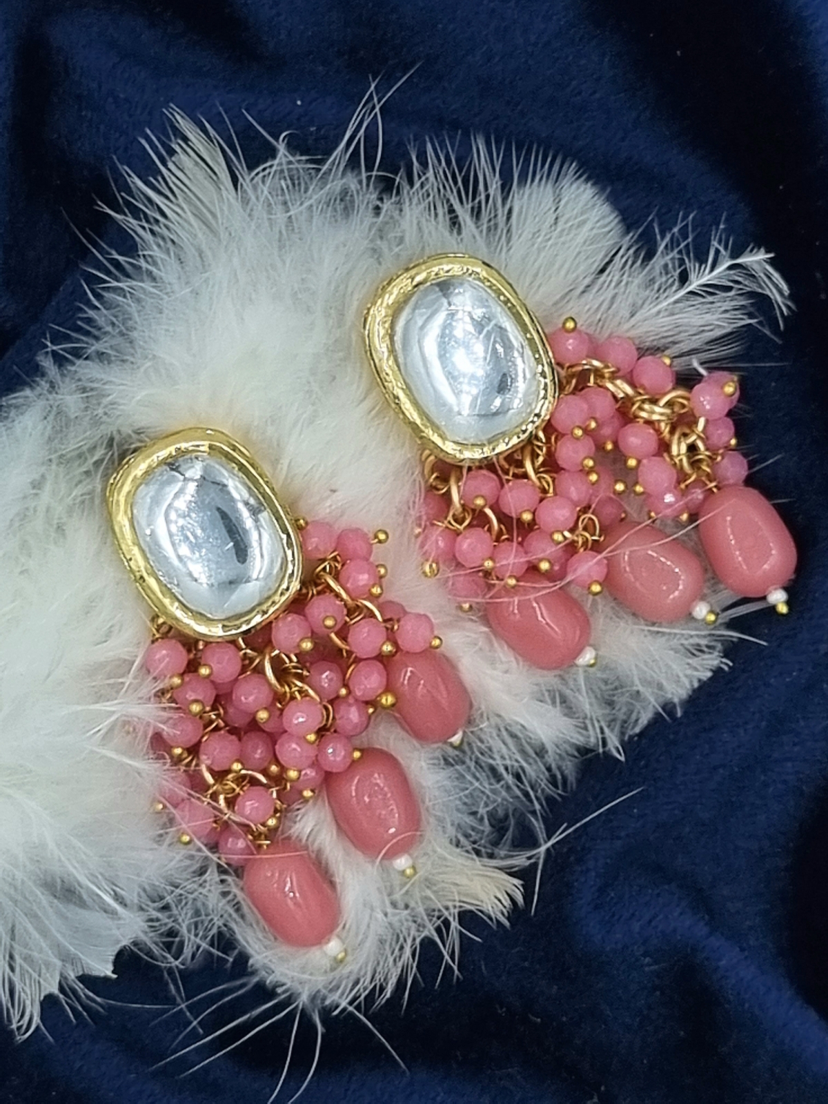 La Trendz Pink Kundan Gold Polish Drop Earrings For Women