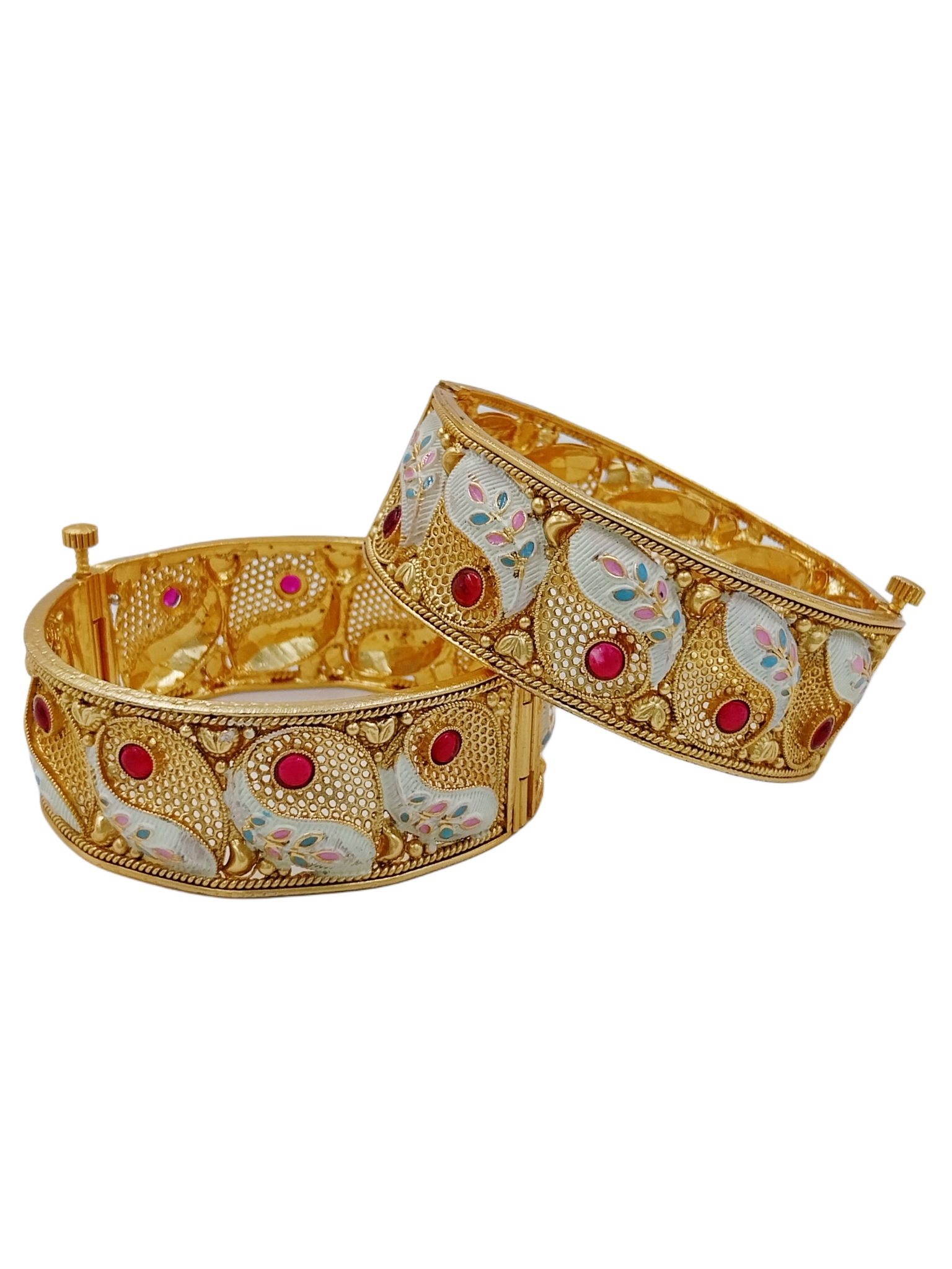 La Trendz Rajasthani Rajwadi Gold Polish Ruby Bridal Style Bangles 2 Set