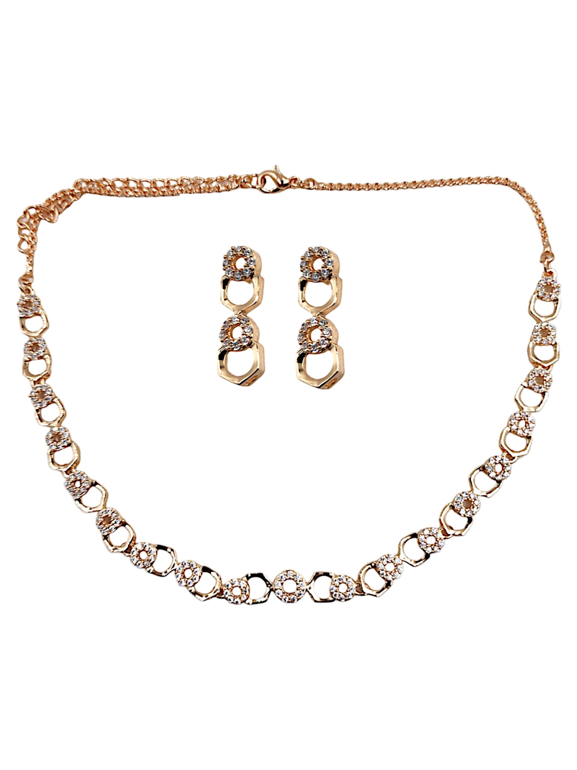 La Trendz Rose Gold Delicate CZ Necklace & Earring Set