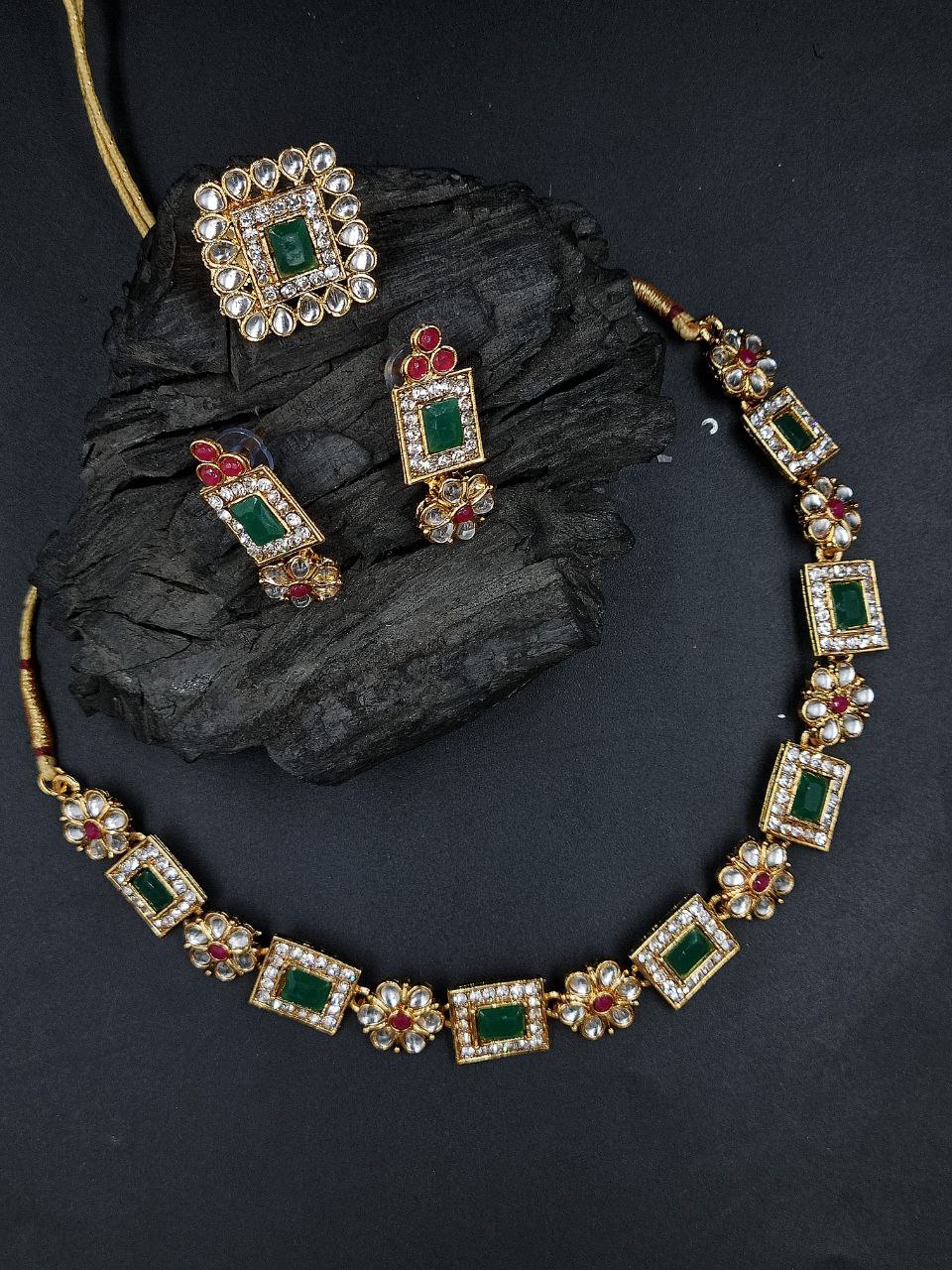 La Trendz Ruby Green Full Stone Traditional Necklace Set For Women