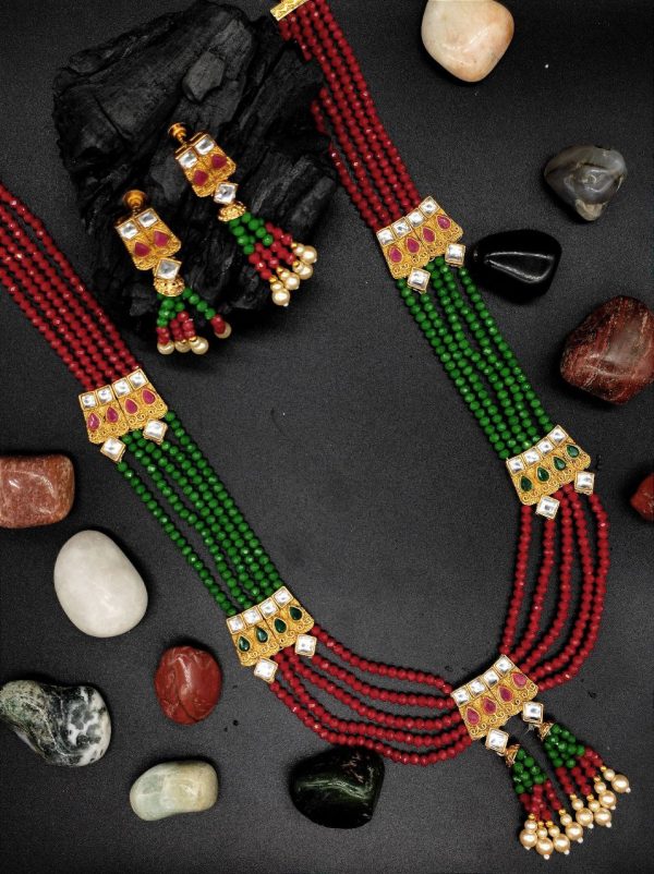 La Trendz Multistrand Beaded Bridal Necklace Earring Set For Women