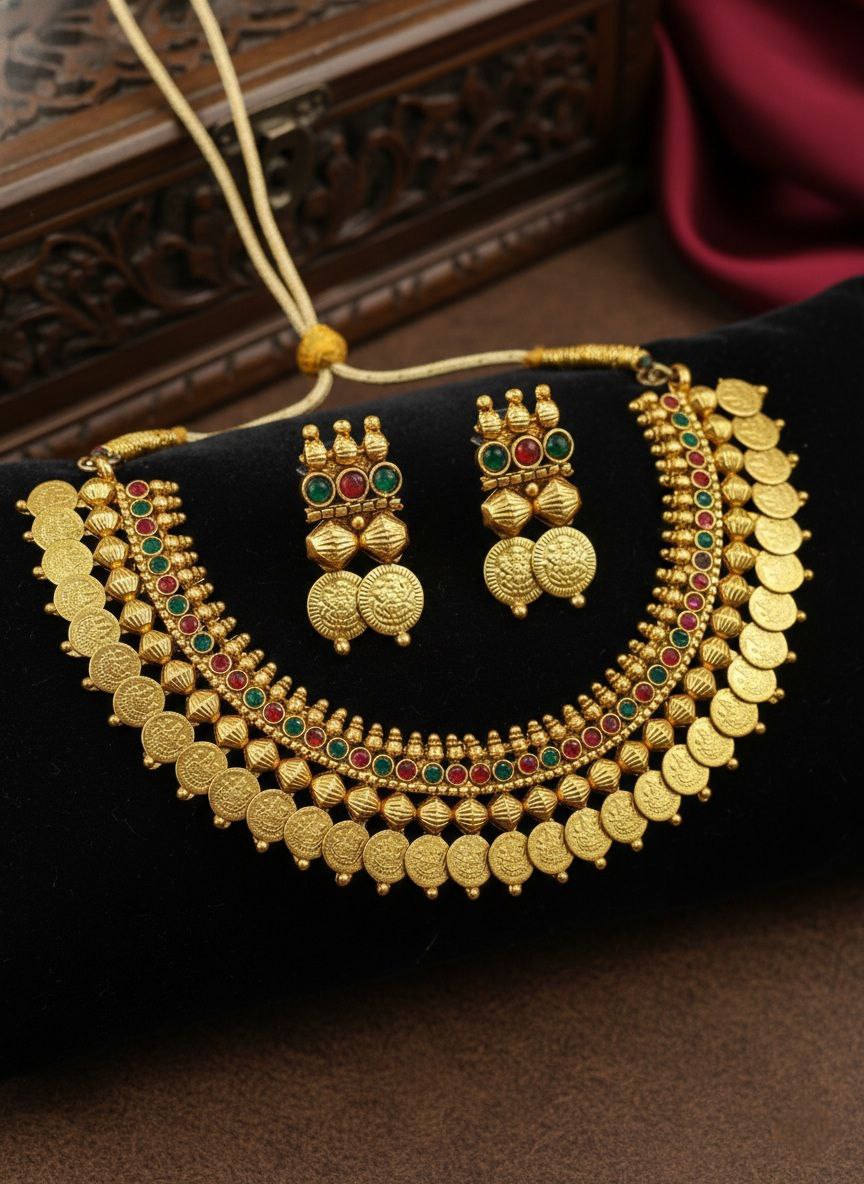 Wholesale South Indian Laxmi Coin Necklace Set Brass Imitation Jewellery Supplier